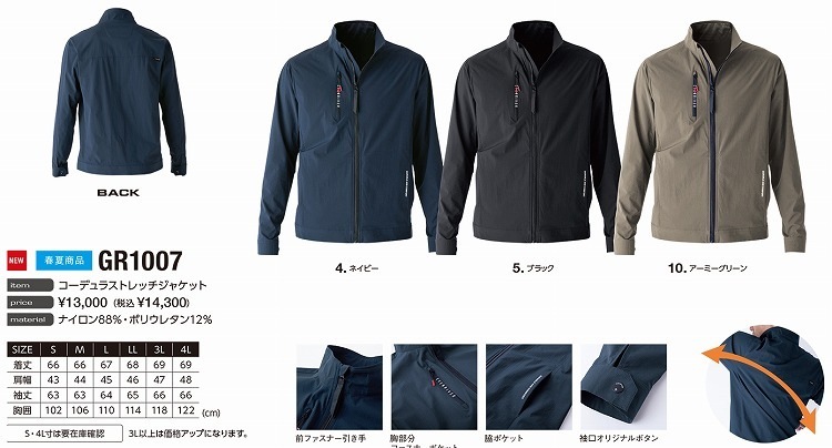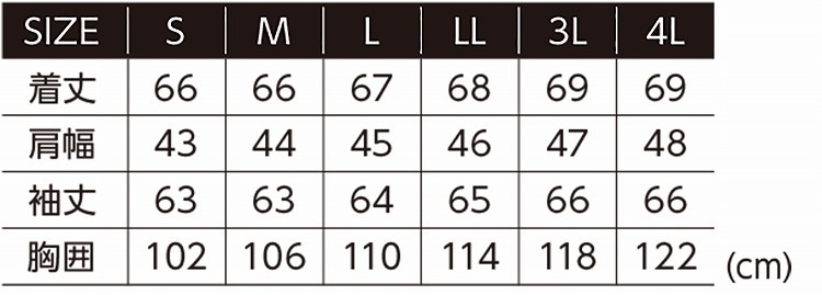 サイズ:S, M, L, LL, 3L, 4L カラー:ネイビー, ブラック, アーミーグリーン
