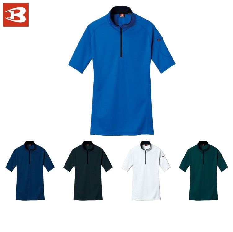 BURTLE バートル415 半袖ジップシャツ SS S M L LL 3L オールシーズン対応 ワークウェア 作業着 作業服 強ストレッチ ポリ 吸汗速乾 ユニセックス