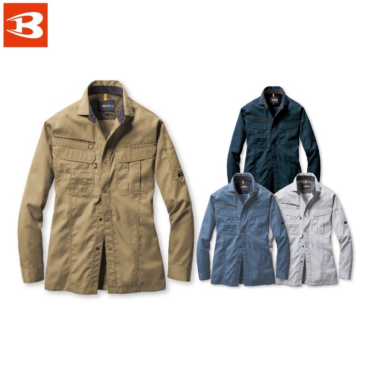 BURTLE バートル1103 長袖シャツ S M L LL オールシーズン対応 ワークウェア 作業着 作業服 ポリ綿 制電素材