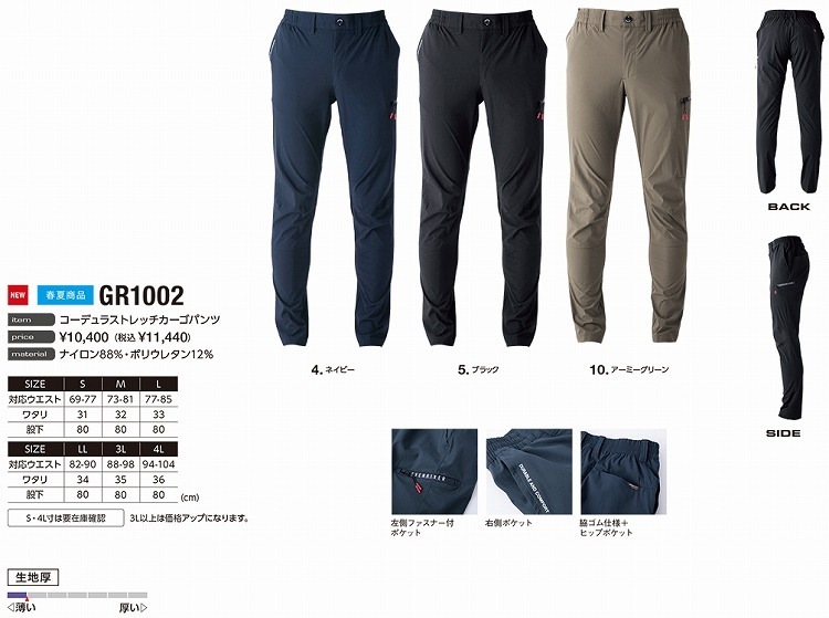 EVEN RIVER イーブンリバー GR1002 コーデュラストレッチカーゴパンツ S M L LL 3L 4L オールシーズン対応ワークウェア 作業着 作業服 セール中!!