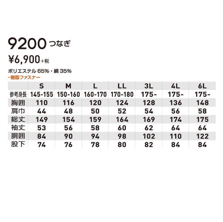 SOWA ソーワ 桑和 9200 9200つなぎ S M L LL 3L 4L 6L オールシーズン対応ワークウェア 作業着 作業服 セール中!!